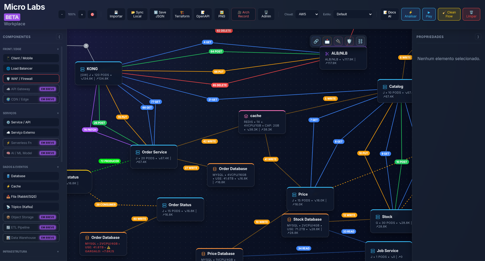 O Micro Labs possui um Linter Inteligente que detecta SPOFs, gargalos de banco de dados e violações de segurança em tempo real, antes que virem um incidente.